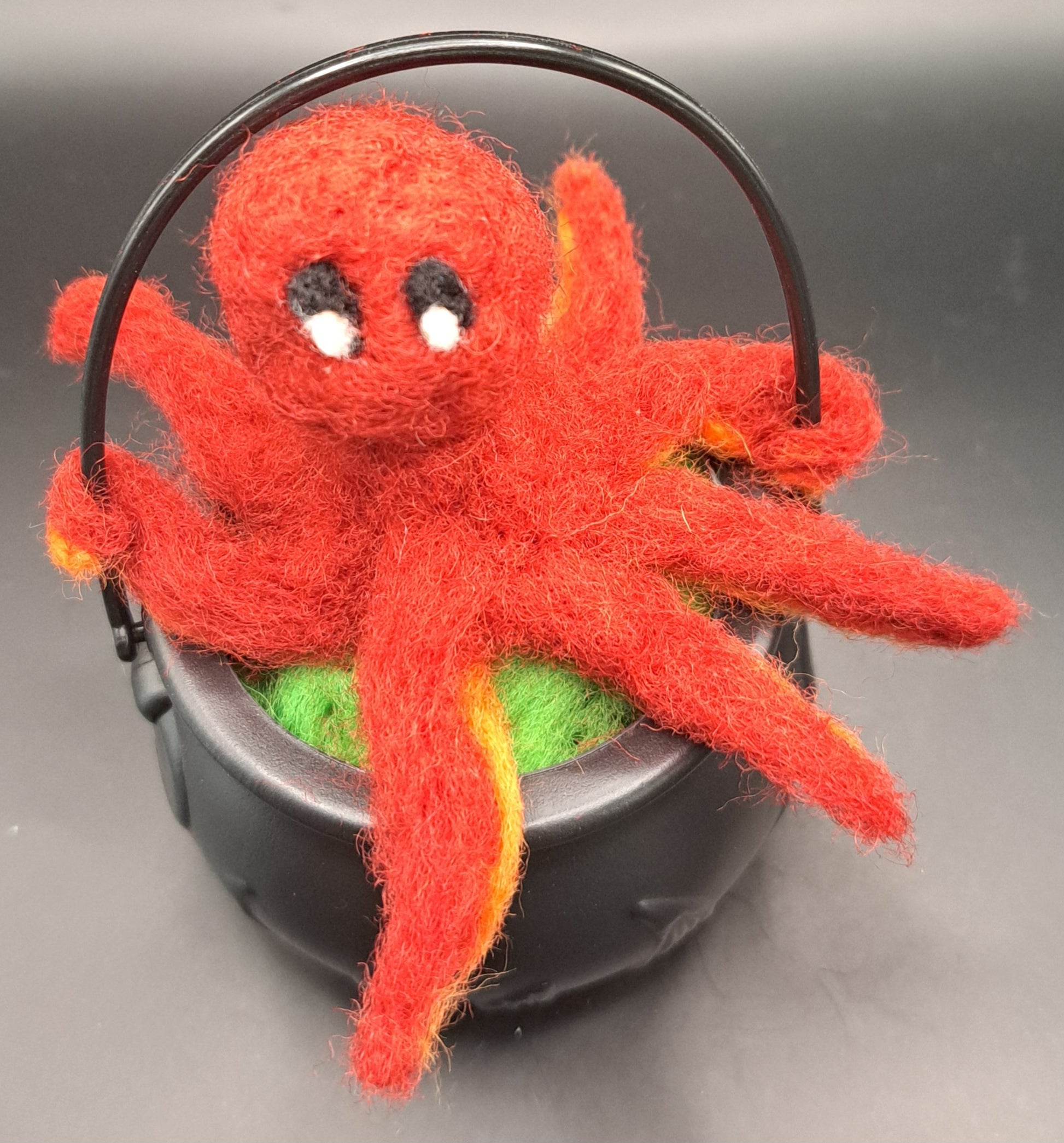 Kicking off with another spooky article, we have the cauldron with needle felted octopus. This can be hung alongside any other decoration.