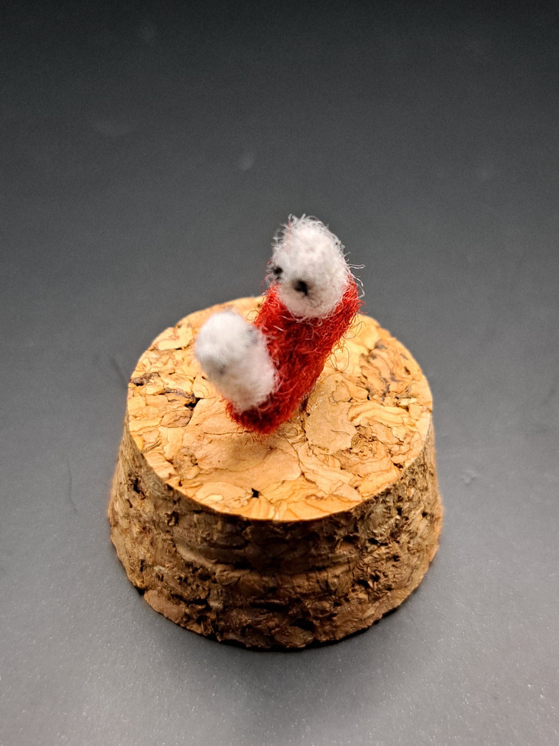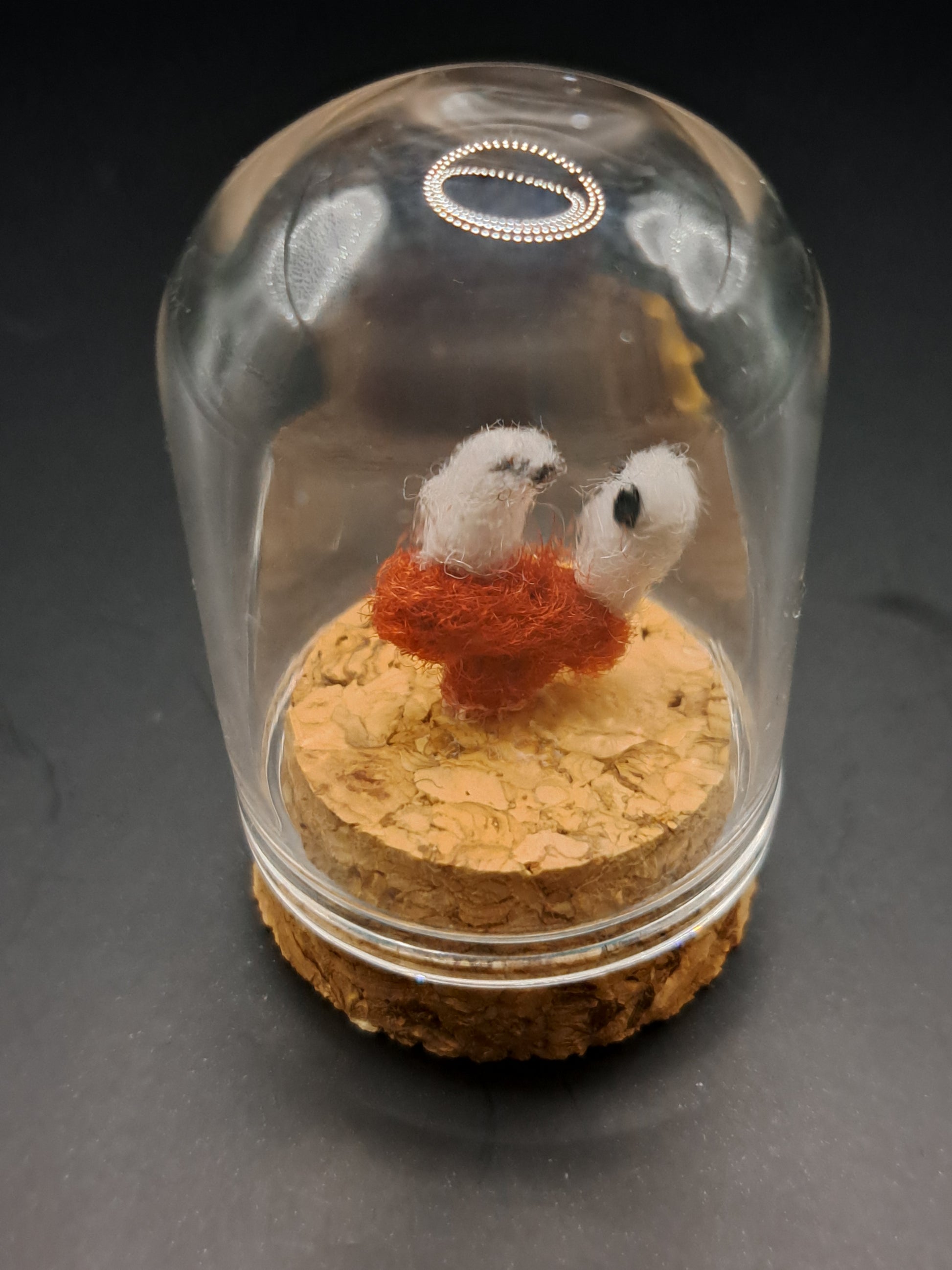 'Seesaw Margery Daw'- Needle felted ghosts on seesaw in bell jar